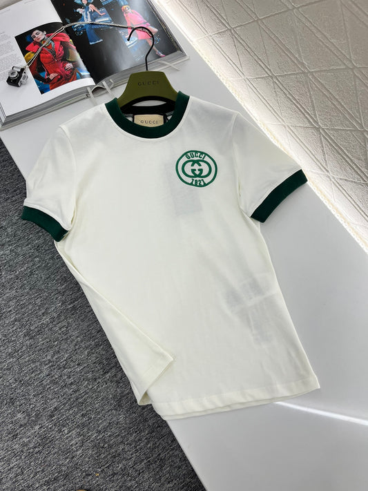 [Gucci] Embroidered Contrast Color Short Sleeve Genuine Open Mold Supports code changes within ten days with no refunds