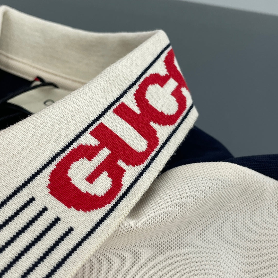 [Gucci] Embroidered Contrast Color Short Sleeve Genuine Open Mold Supports code changes within ten days with no refunds