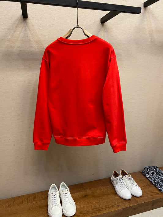 Gucci Wholesale red Cotton Hoodie Mid Weight Brushed Inside Fleece Contrasting Colour Piping Round Neck Long Sleeves Mens Sweatshirt