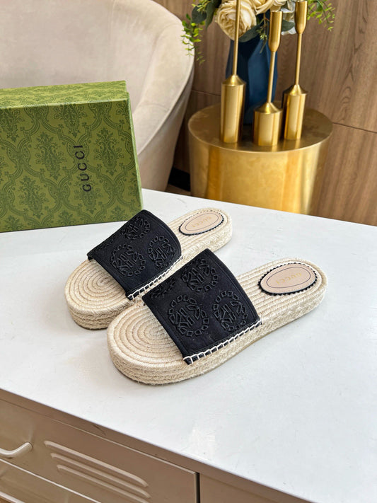 Gucci【Gucci】Tong, fashionable small cloth shoes, uppers made of breathable fabric, rubber foam soles, men's size 38-44