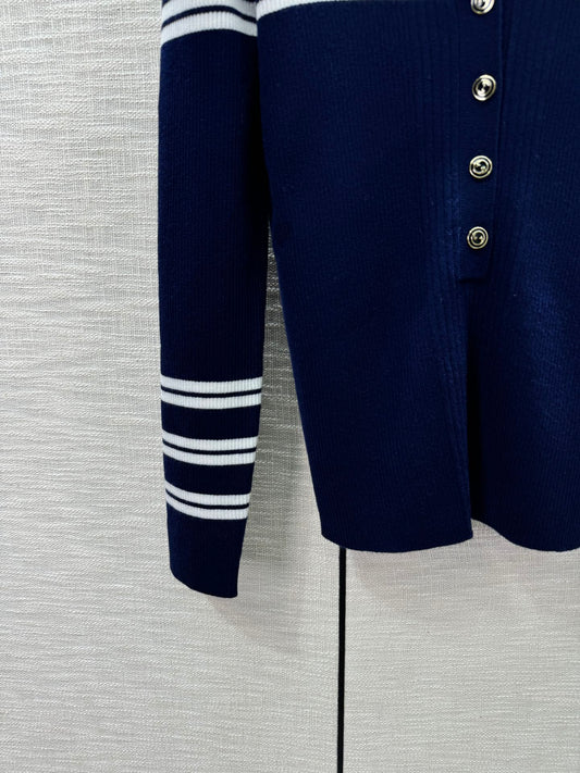 ☆【Gucci】Contrast color striped polo collar knitted cardigan