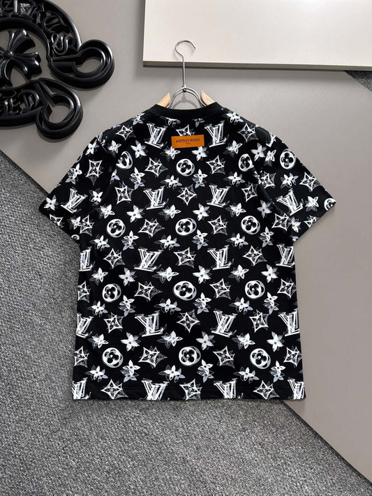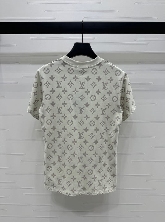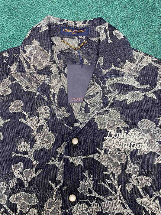 lv The new 24ss spring and summer denim short-sleeved shirt is paved with L Waves jacquard texture