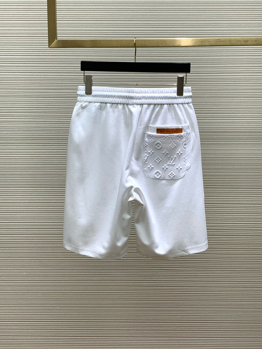 Lv 2024 summer shorts! Versatile casual pants with elastic waist! The pocket fabric on both sides of the elastic waist is made of custom-woven high-count pure cotton.