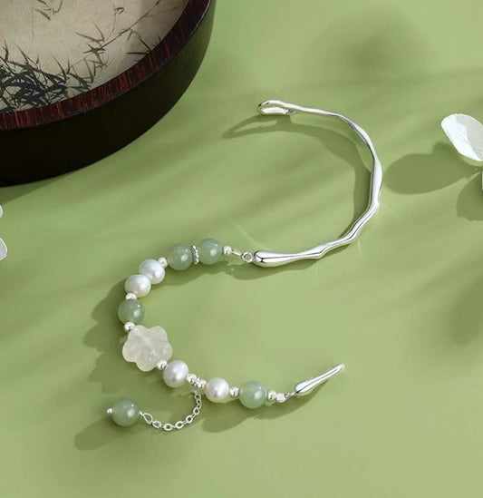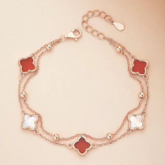 Wholesale Hot Selling Fashion Jewelry Mini Garnet Beads Bracelet with Plated Flower