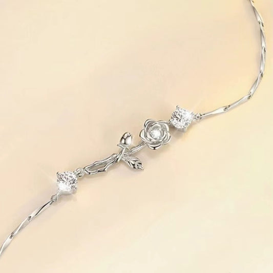 925 Sterling Silver Adjustable Bracelet Pave Zircon Bow Charm Bracelet with Rhodium Plated Chain