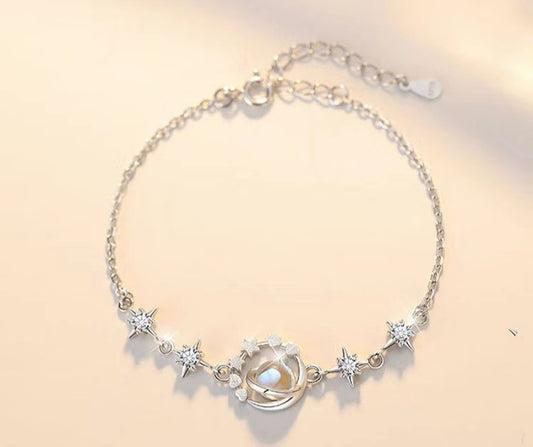 New Arrival Fashion Jewelry 925 Silver Star Charm Moonstone Beads Bracelet