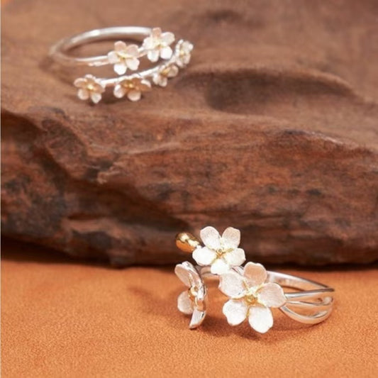 OEM Good S925 Sterling Silver Jewelry Handmade flower Adjustable Rings For Women Luxury Wedding