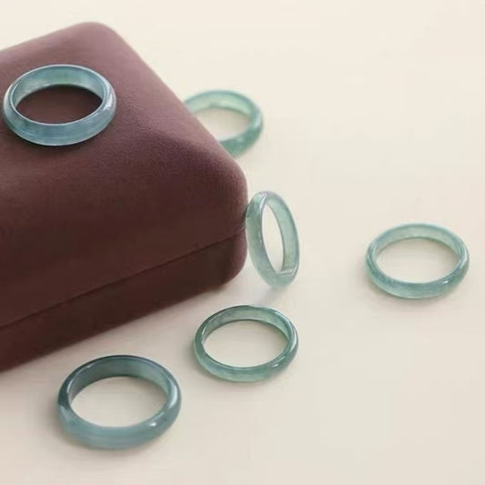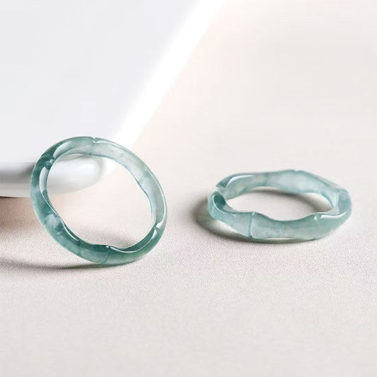 Chinese Natural Emerald Green Chalcedony Hand Carved Bamboo Water Ripple Ring Fashion Jewelry Women Green Agate Ring