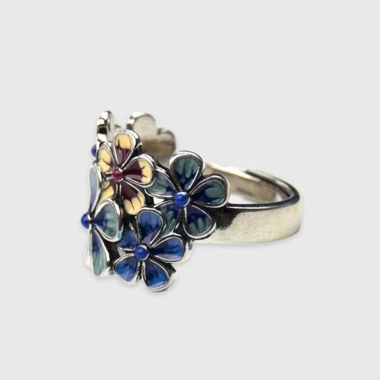 Floral Blossoms Like Brocade Flower Ring Ring Ring Cloisonne Retro Ethnic Style Pure Handmade Adjustable Hip Hop Style